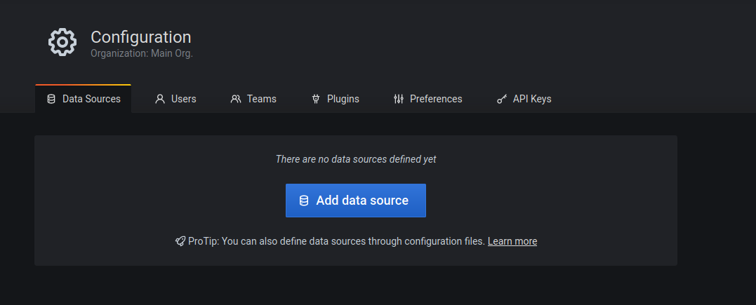 There aren't any data sources created yet, click on "Add data source" to define one.